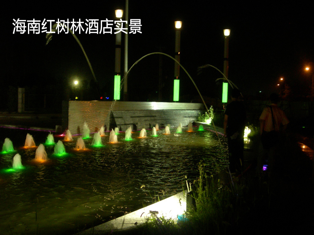 海南紅樹林酒店噴泉的水型、燈光及色彩的變化與音樂情緒的完美結合,使噴泉表演更加生動更加富有內涵及體現水的藝術..