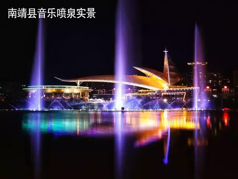 南靖縣音樂噴泉根據聯覺現象來組態各種水型,好比舞蹈展現出震撼、思念、抒情、喜悅、激昂、悲哀、歡快、熱烈等,噴泉造型與音樂旋律、燈光同步結..